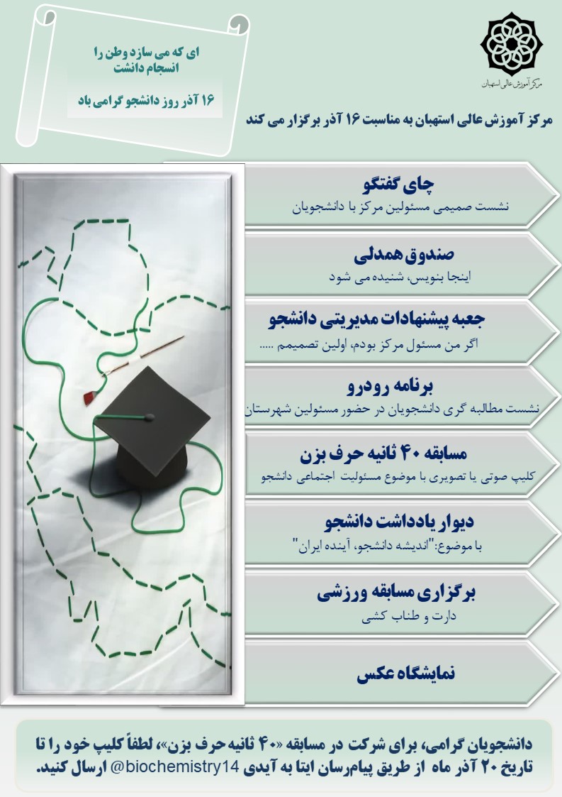 پیام معاون محترم آموزشی، دانشجویی و پژوهشی مرکز به مناسبت ۱۶ آذر، روز دانشجو